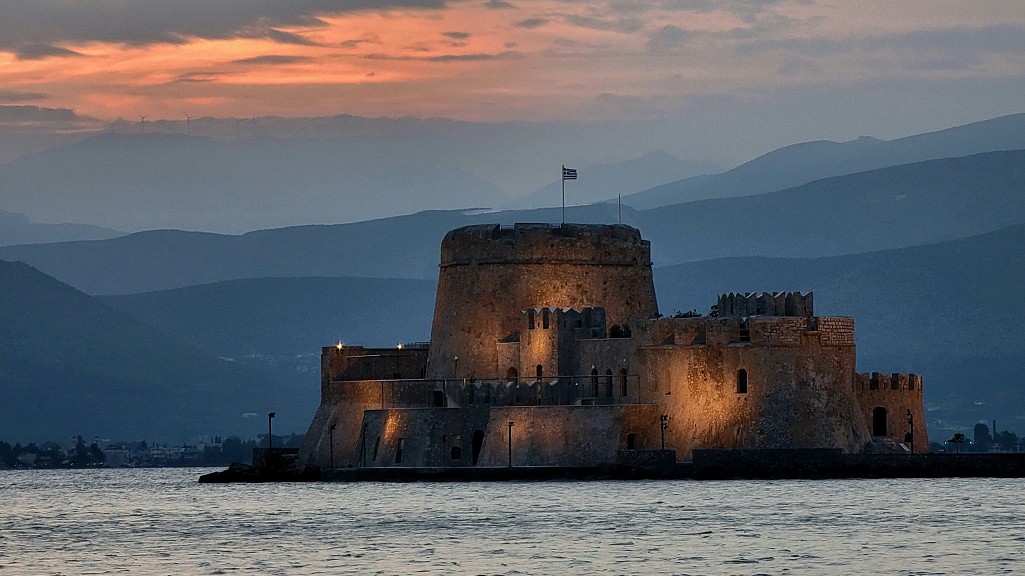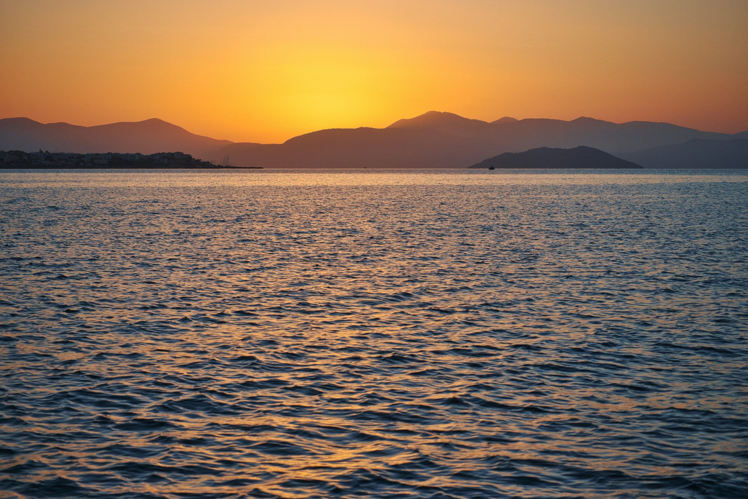 Wake up to calm waters and golden light — Greece at its most peaceful.
