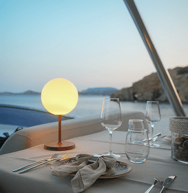 Sunset aperitifs on the flybridge, candlelit dinners on the aft deck, or late-night cocktails under the Aegean sky. From expertly crafted drinks to multi-course dinners, every moment is designed around your perfect evening.